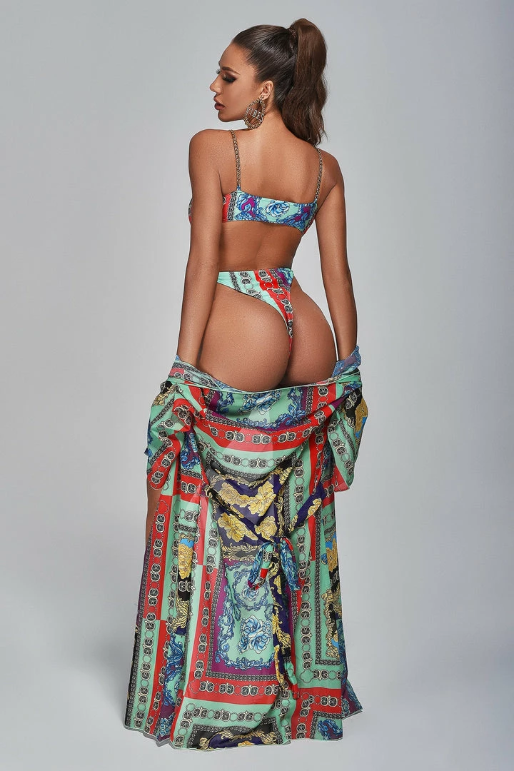 Our Ankie Swimwear Set is Printed in a way that is both unique and charming, designed to be your first choice for a beach visit. This style is made of our comfortable fabric and has a beautiful floral pattern to create a stunning two-piece swimsuit. The one-piece swimsuit inside has a unique cut-out design that accentuates your curves. Dress for a rooftop pool party at the beach or hotel.