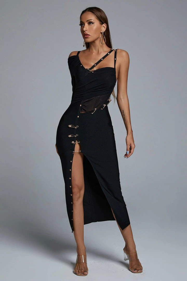 She is one for all of your special occasions, the ‘Arabella One Shoulder Bandage Dress’ features one shoulder, mesh, maxi length. Dress it up with some mules or heels, a cute bag, and simple accessories.
