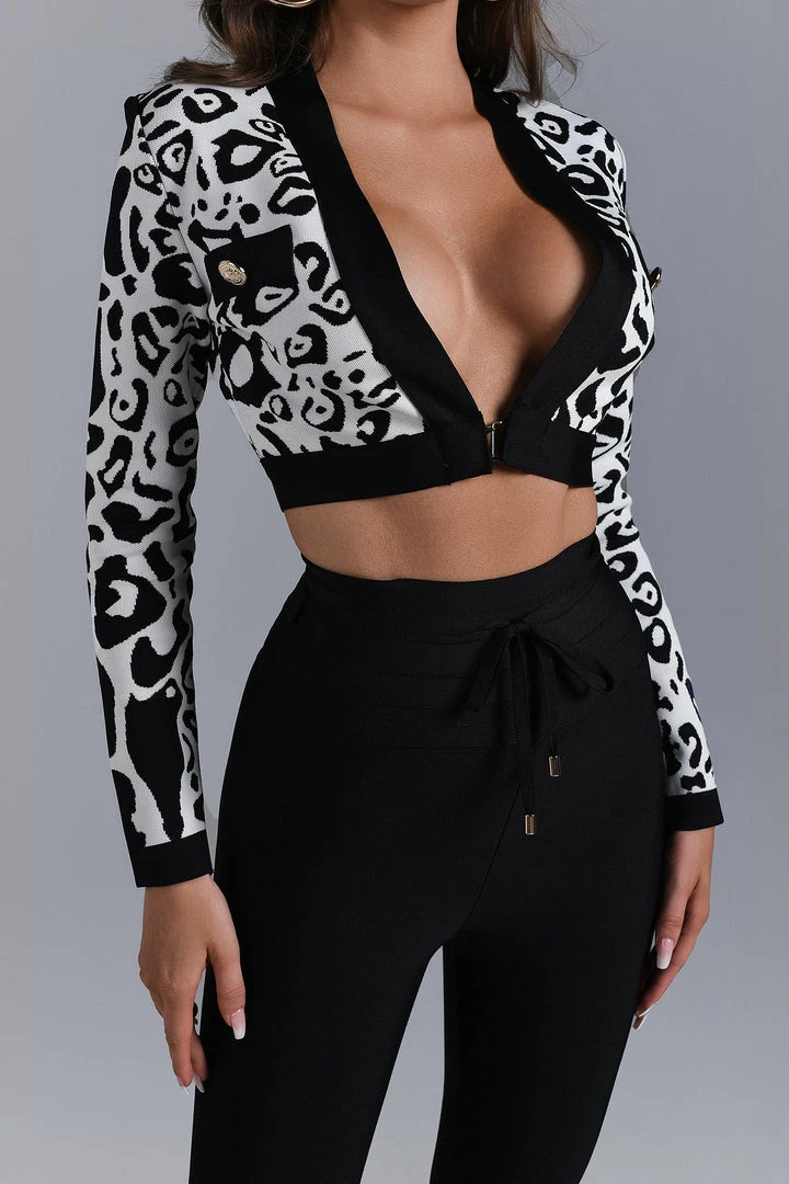 The Cass Leopard Knit Top is your Top choice for home or work. Comfortable fabric, versatile color, special leopard print pattern. You can complete the outfit with a pair of black pants or a skirt.