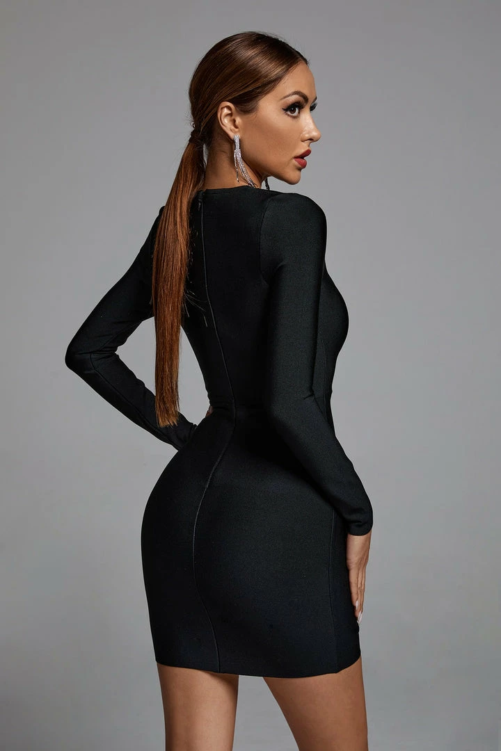 Ela V Neck Mesh Mini Dress is here to make your next night out one to remember! Mesh fabirc shape a sultry V neckline, long sleeve bodice, and figure-flaunting bodycon mini skirt. Small side slit gives this little party dress some seriously sexy vibes! Glow on, girl in this party dress will bring the shimmer and glamour to the beautiful night!