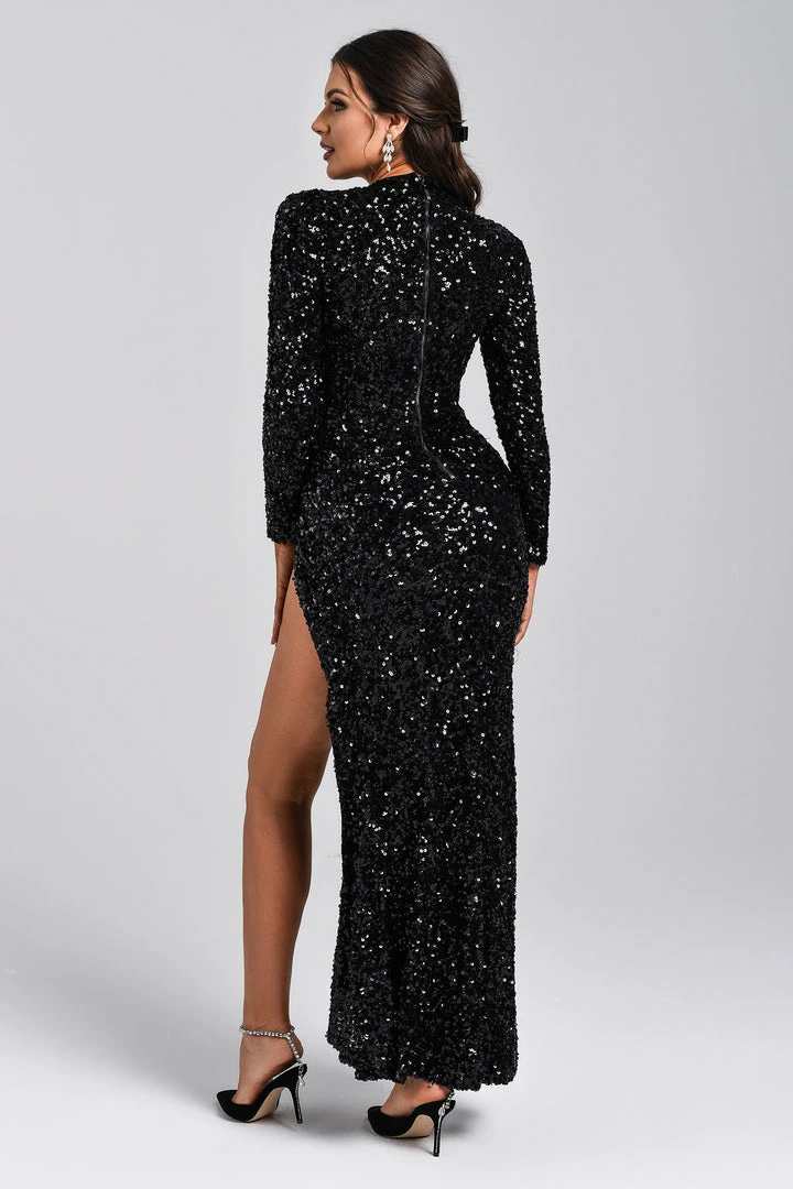 The sequin long sleeve dress is sure to wow the crowd at your next special event! The dress is adorn in sequin and features irregular mesh splicing, which highlight your sexiness and charm. Pair with long earrings and high heels and head out for the night! Easy put on/off. Hidden back zipper/clasp.