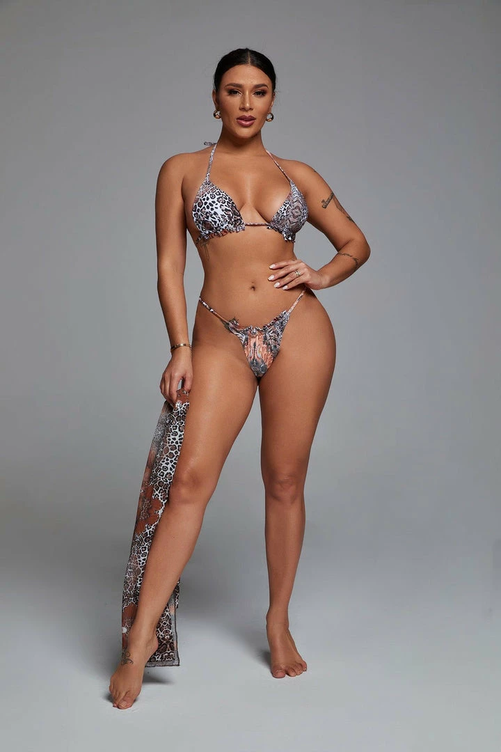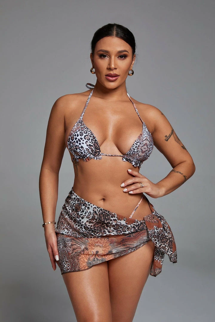 The Rioy Three Piece Set is the perfect outfit to wear on a beach holiday. Add a mesh triangle cup top with a matching bottom and cover for a vibrant brown look. Not only let you have a very good wearing experience, but also can show the perfect figure.
