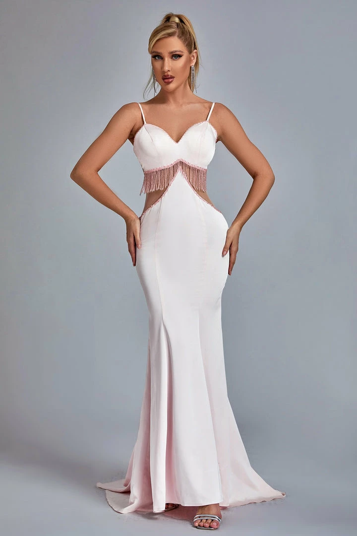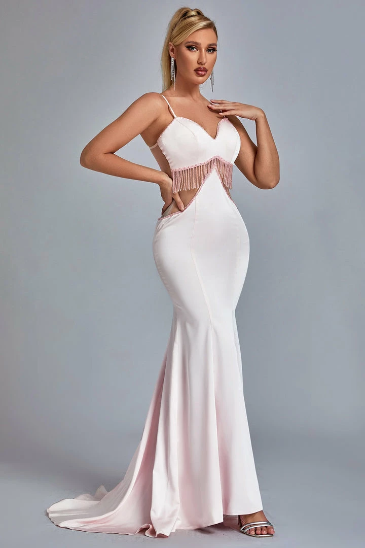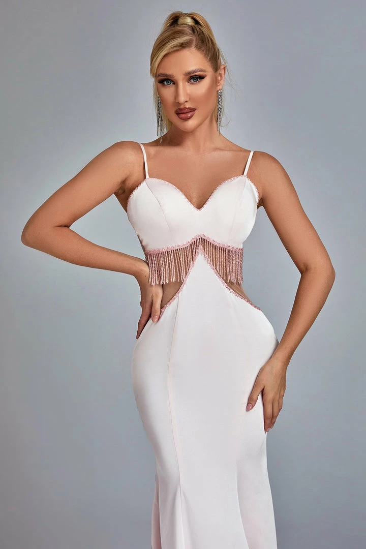 Let the night be all about you looking chic in the Eaka Satin Diamonate Tassel Cutout Maxi Dress! This figure-perfecting party dress with cut-out details is one of our absolute favorites in the closet. The cut-out under the bust, embellished trim create a simple style with maximum impact. Pair with stilettos and your favourite mini bag for an unforgettable look.