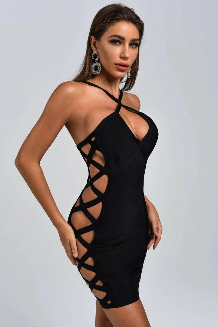 The .Fanta Halter Mini Bandage Dress will leave you positively spellbound! It’s crafted from bandage fabric to sculpt and shape the figure, acting like shape wear that is cleverly built into the dress. Pair this party dress with strappy heels for a super sexy party look!