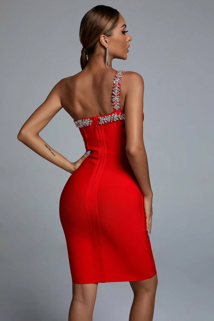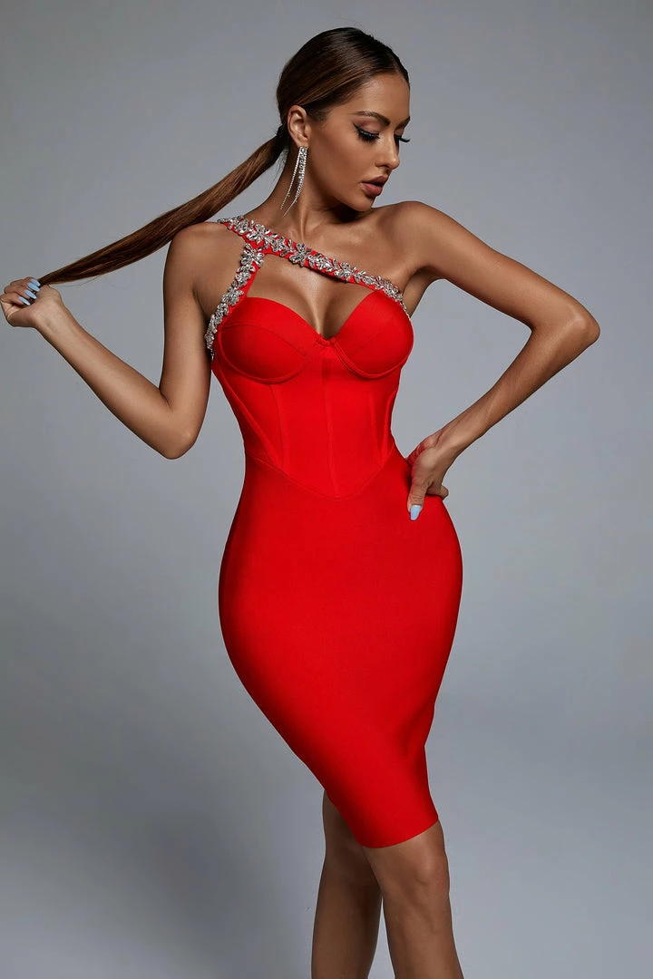 Cut from a heavy quality luxury stretch bandage, ‘Hanny’ point is the ultra luxurious and high quality crystal rope trim, that’s all finished expertly by hand. It’s fully boned through the bodice in a balconettte shape that really cinches the waist right in.