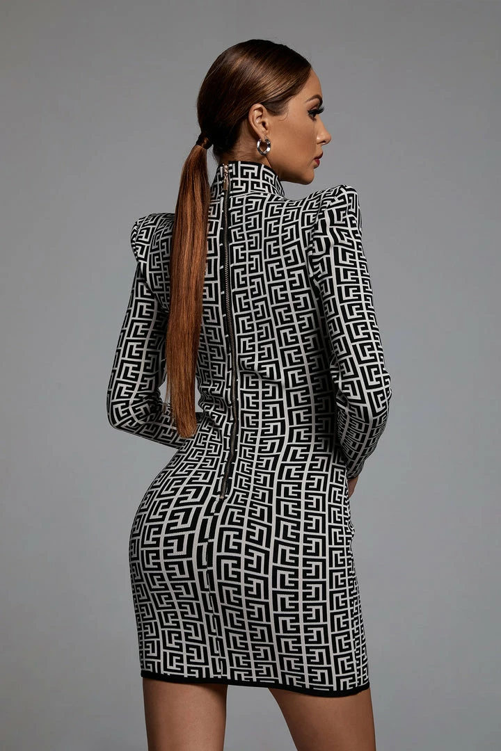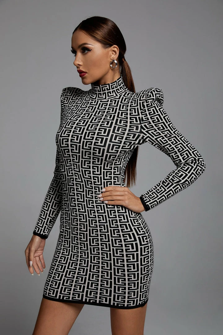 This figure-perfecting party dress with cut-out details is one of our absolute favorites in the closet. It’s crafted from bandage fabric to sculpt and shape the figure, acting like shapewear that is cleverly built into the dress.