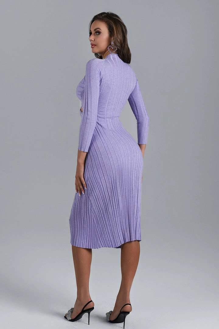 This Suki Long Sleeve Cutout Knit Dress will make a romantic out of you! Knitted fabrics allow you to have the perfect wearing experience in all the right places. The cut-out under the bust, embellished trim create a simple style with maximum impact. Pair with stilettos and your favourite mini bag for an unforgettable look.