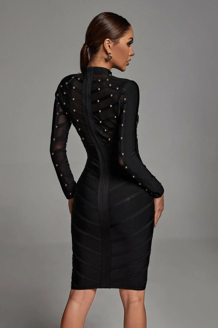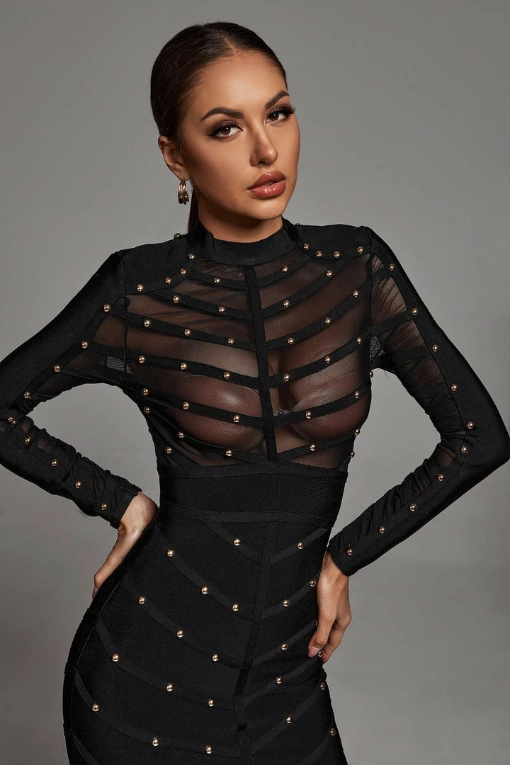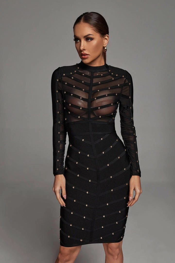 We’ve got that dress that fits in all the right places!! This Winry Long Sleeve Mesh Bandage Dress could not be any more flattering – with real, hand-fashioned metal embellishments specifically designed to show off the body at its sexiest points. Signature bandage dress material and mesh fabric at the front give this party dress a breathable fit!