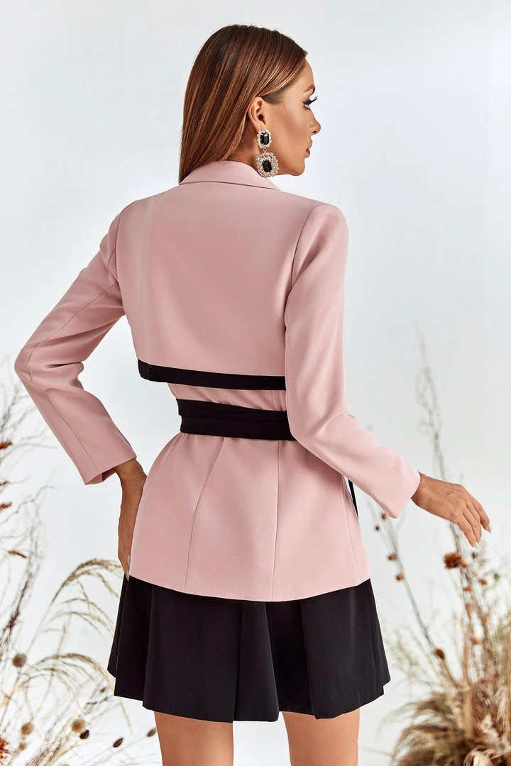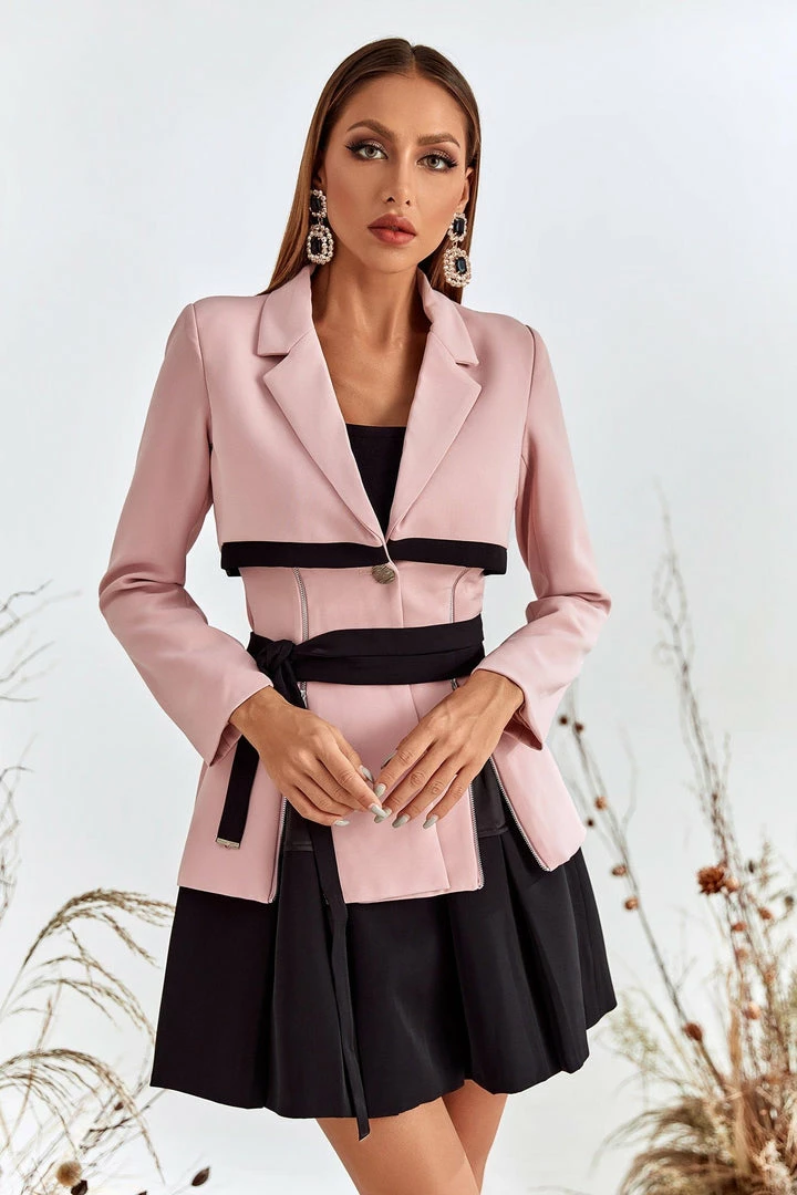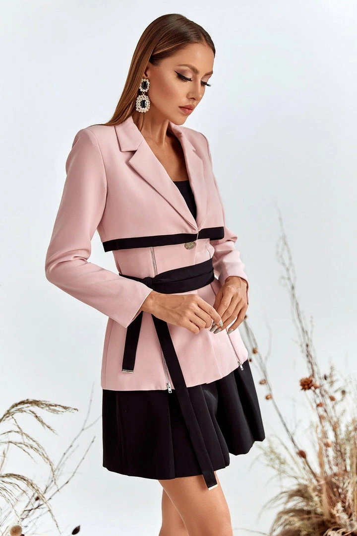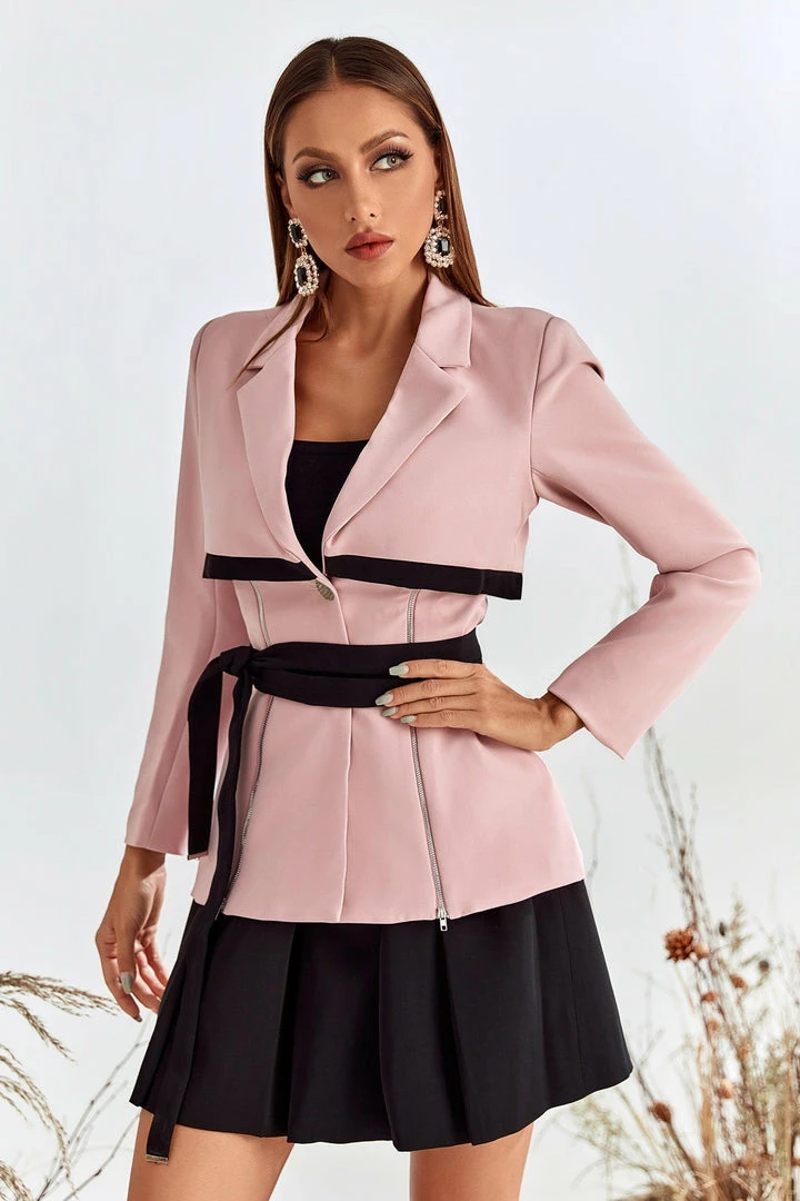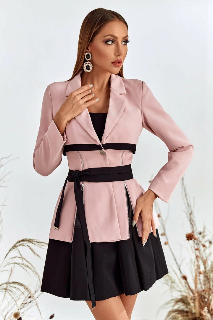 The compliments won’t stop rolling in when you’re wearing the blazer dress! The long sleeve dress are decorated with zippers on both sides, which can be opened or closed, so chic and unique! We’re completing the look with little black dress and a pair of earrings.