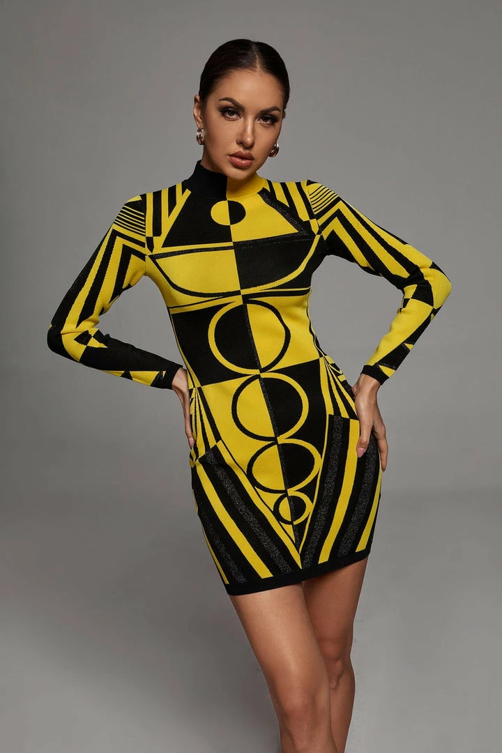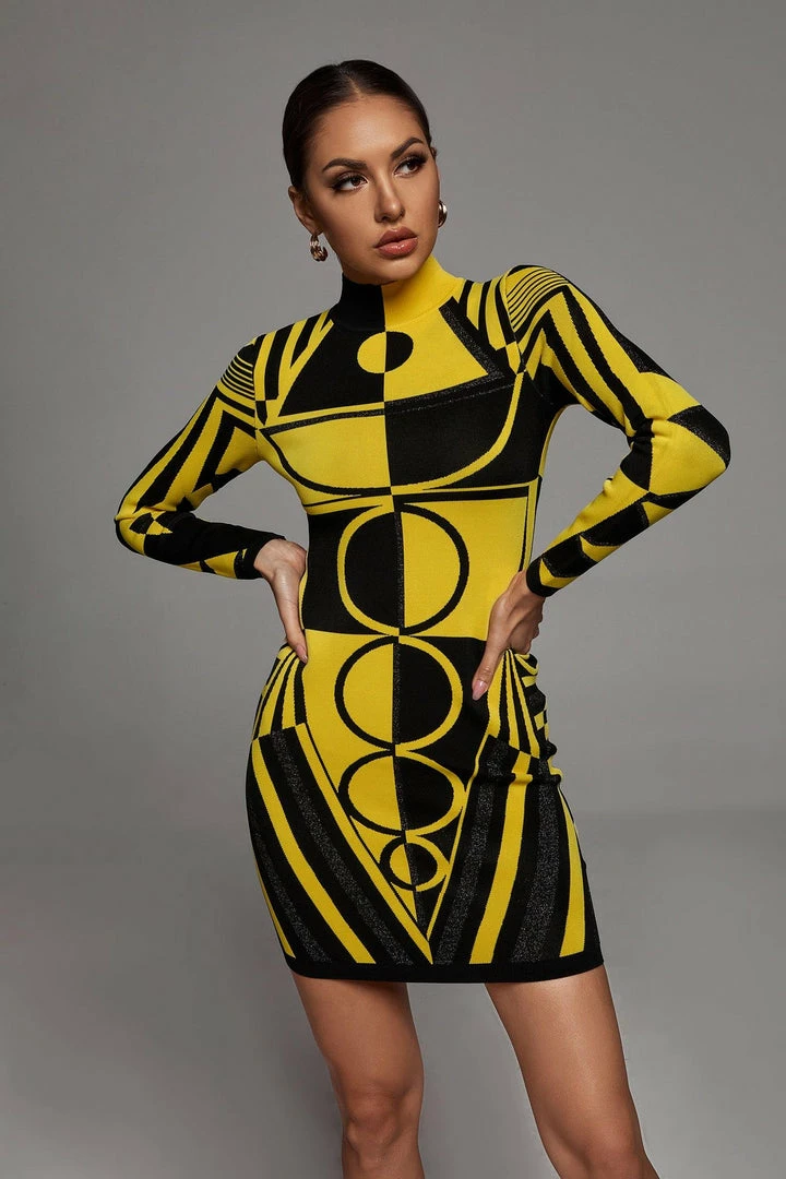 So flattering and chic is the Ainslie Long Sleeve Bandage Dress. The chic color block design in bandage fabric guarantees you will not be disappointed in the compliments department at any event! You can also add it to the list of your party dresses!